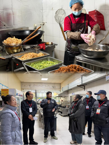 代表们先后对门岗、宿舍、餐厅等重点区域进行了巡视。在南北门岗巡视时,重点查看了设施配备状态、安全保卫设备运行情况及人员值守记录;在南校区2号宿舍楼巡视时,仔细查阅了宿舍管理资料,详细了解学生入住分布与出入管理流程,实地查看了消防设施配备、部分学生寝室的住宿条件,以及楼层照明、通风等生活保障情况;在餐厅巡视时,严格查看了后厨环境卫生、食品加工流程、餐用具消毒、食材储备管理及食品安全卫生措施执行情况等。